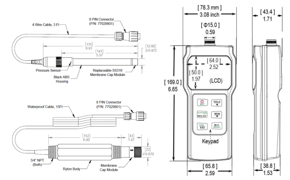 测量范围 | 实验室款:0-20mg/L(ppm), 0-200%饱和度 0-500%饱和度 |